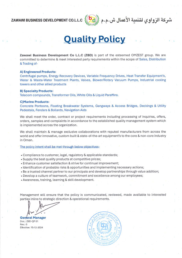 Zawawi Business Development Co (ZBD), one amongst the 70 wholly owned and associate companies from the premier and diversified OMZEST group, have been synonymous to introducing products & services with latest technology to Oman from world class companies across the world. Having built strong business associations with some of the big multinational names in the engineered products, specialty & marine industry, we strongly believe in “partnerships through Value addition”. It is very evident from the fact that our business partnerships with the principals are several decades old.